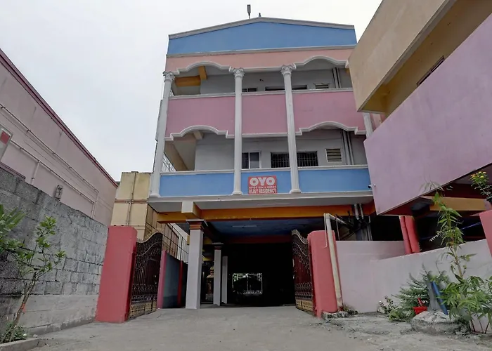 The hotel is situated in the South Chennai district of Chennai, within a few blocks of the restaurant Fika. Swarna Sudarshan Convention Hall is around 10 minutes by car from this Chennai hotel, while Axis bank bus stop is around 10 minutes' walk away. There is the Sri Utthara Guruvaayoorappan temple 2.6 km from the Vijay. For those travelling from afar, Chennai International airport is 15 minutes' drive away.